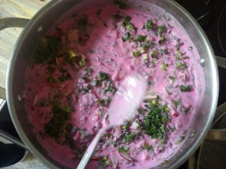 Botwinkę dokładnie umyć i osuszyć. Listki oraz łodyżki posiekać, a buraczki obrać i pokroić w małą kostkę. Przełożyć do garnka i zalać niewielką ilością wody. Gotować aż zmiękną (ok. 15 minut). Jaja ugotować na twardo i po ostygnięciu pokroić w łódeczki. Rzodkiewki i ogórki umyć, a następnie pokroić w małą kostkę. Koperek i szczypiorek umyć i posiekać. Botwinkę zagotowaną w garnku zblendować i dodać jogurty. Wymieszać i dodać warzywa oraz jaja. Doprawić do smaku 🙂 Zupę przechowywać w lodówce.