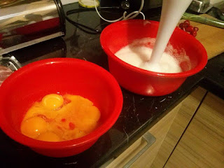 Białka oddzielić od żółtek. Białka ubić, ale niekoniecznie trzeba na sztywną pianę – ja żeby zaoszczędzić na czasie ubiłam tylko trochę, żeby były pusztyste. Żółtka zamerdać widelcem. Masło rozpuścić na patelni, wrzucić pokrojoną szynkę i podsmażyć. Dodać pokrojoną paprykę i szczypiorek. Żółtka wlać do białek, zamieszać i zalać równomiernie składniki z patelni. Przyprawić solą i pieprzem. Chwilę smażyć na wolnym ogniu, po czym wykonać manewr przerzucania na drugą stronę. ja odwracam patelnię tak, żeby omlet spadł na drugą patelnię i ześlizguję z powrotem na pierwszą patelnię, tak żeby dosmażyć go z drugiej strony. Chwilę później omlet jest gotowy. 🙂