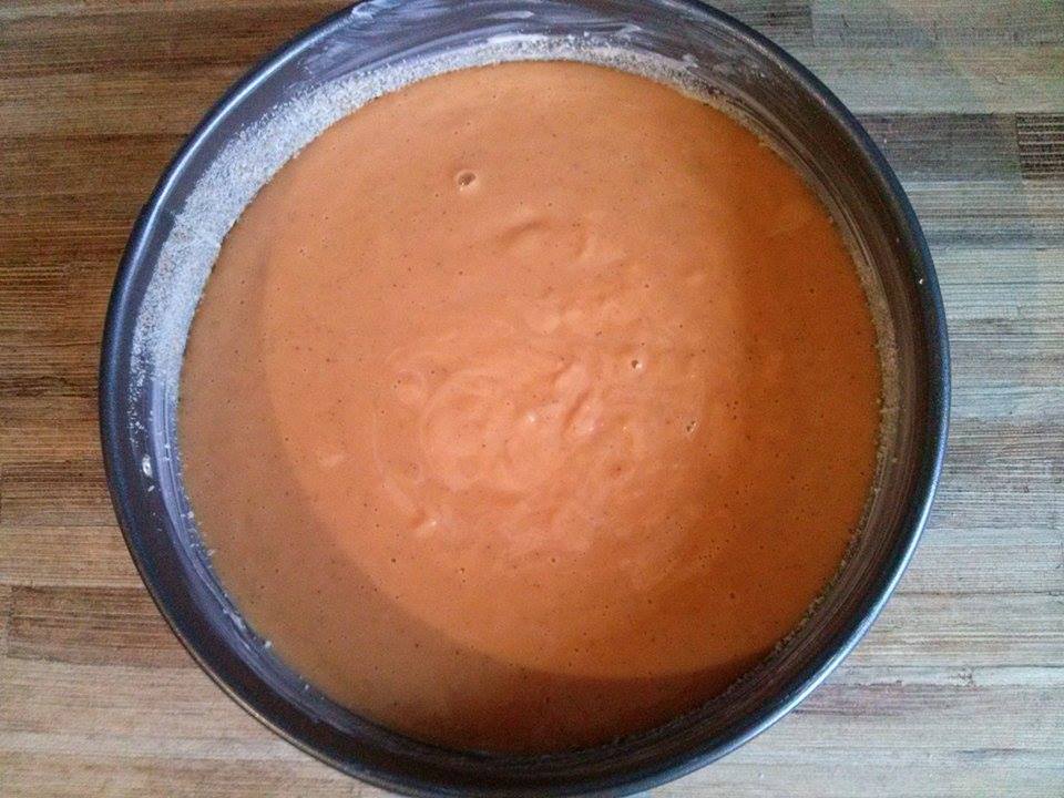 Tortownicę wysmarować masłem i posypać bułką tartą. Wlać masę i włożyć do piekarnika. Piec 1 godz. 20 minut -1 godz 30 minut. Po tym czasie zostawić ciasto w piekarniku do ostygnięcia (wtedy nie oklapnie).